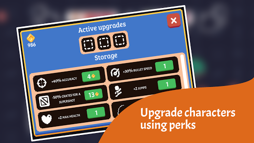 Jump and shoot to win! Upgrade your fighter by braking any crate to collect coins that you can spend on unlocking upgrades for your characters to fight even better and progress further until you meet your friend again.
