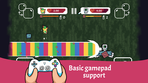 All of that while gazing upon lovely, minimalistic and friendly pixel art with chibby characters battle each other and try to compete in epic dual fights.