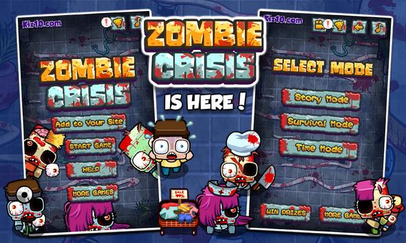 Zombie Crisis is here, and ready to make some crisis and panics to your town! Find a safe place for yourself when zombie crisis attack your town. Those undead creatures are everywhere, and it's up to you to keep them away from you. Use all items and weapons for mass clearing, then smash and eliminate them and find some fellow survivors! By Kiz10.com