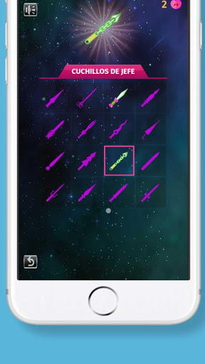 Lanza los cuchillos a los troncos para romperlos. Corta las manzanas y desbloquea nuevos cuchillos. Cada 5ta etapa es defendida por un jefe: ¡golpéalos para obtener cuchillos exclusivos!