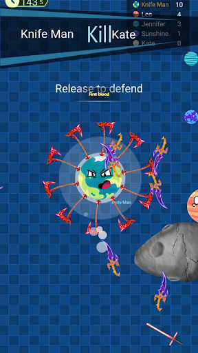Swords surround you, and there are more swords on the ground to pick up and make yourself stronger. If you encounter a stronger enemy, be sure to switch to defense mode. Once you have defeated all opponents, you will win the game.