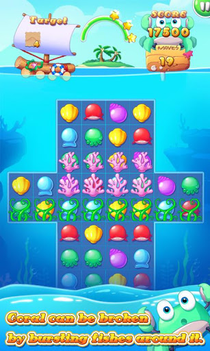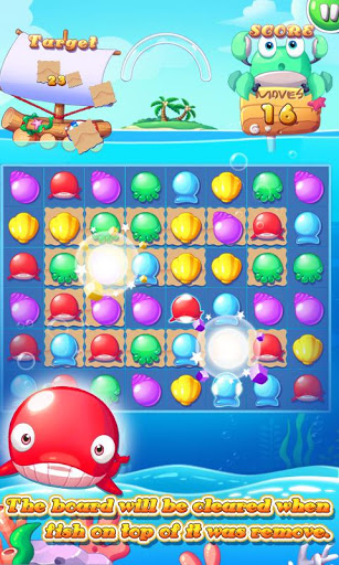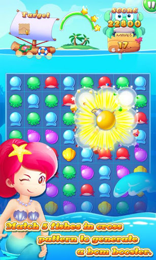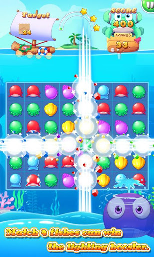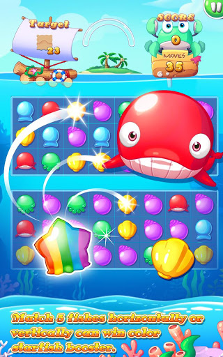 - Match 5 fishes horizontally or vertically can win color starfish booster.