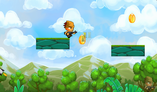 Super solda jump run . C'est un jeu de plateforme où vous devez passer le personnage principal, soldat, à travers les obstacles pour sauter sur le niveau et collecter des pièces.