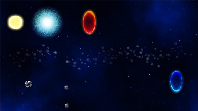 Establish the initial direction and speed of your spaceship. Take advantage of the planets, portals and various gravitational forces to avoid asteroids and obstacles and to lead the ship into the final warp.