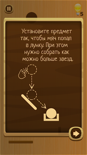 В этой игре вас ждет множество уровней различной сложности! Расставь предметы так, чтобы мяч попал в лунку, при этом собери как можно больше звезд! Приятной игры!