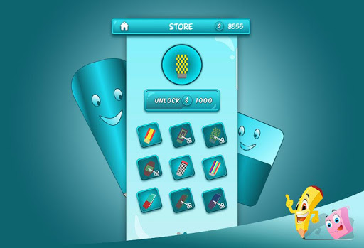 you can select or purchase many other pen, pencil and stylish eraser with the coin you have earned from game