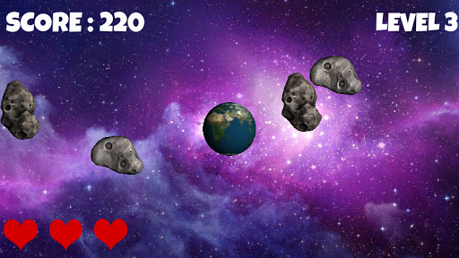 Save Earth 3D is a game in which you have to save the Earth from oncoming asteroids, just touch the asteroids to destroy them. Play through different speed levels in Save Earth 3D. With time the speed of asteroids will increase and saving Earth will become difficult.