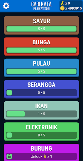 Tersedia beragam level yang siap kamu mainkan, dibagi dalam beberapa kategori dan kelompok level yang berbeda.