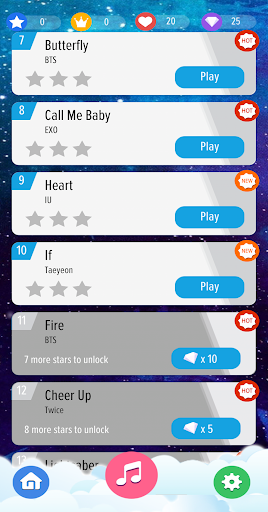 Kpop Magic Piano Tiles is very easy to play. The rule is simple. Tap on the black piano tiles continuously to play the music. Watch out for the white tiles and never miss any black piano tiles to complete every song!