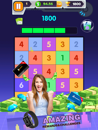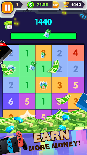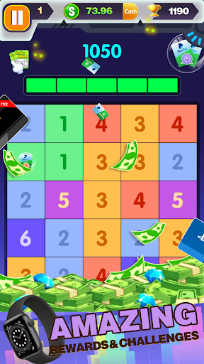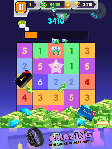 Once three or more same numbers link, such numbers will crush and a bigger number appears.