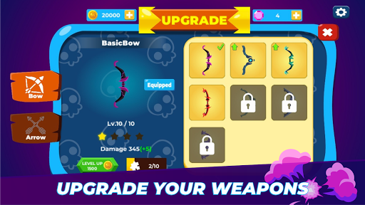 In a Stickman world, where the good and evil both exist, your character has to fight for his resident’s survival. There is a dark side of the land ruled by evil sticks and dark bosses. You have to fight to get the land back for your resident. Started with only a classic bow, you need to fight and conquer each quest to gain level, coins and better weapon. A lot of awesome weapons and outfits are waiting on the quest as you conquer.