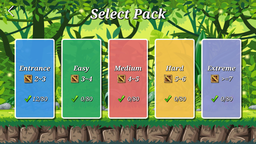 - The levels divided into five different packs by boxes numbers. You can select the degree of level difficulty easily.