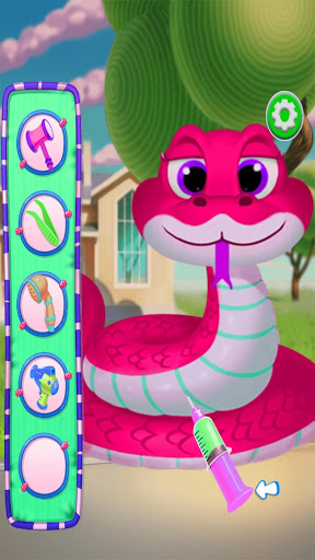 - At the third level, we have our snake that has just hatched from its egg, we have to take care of it, our baby snake has to take a shower, and be clean to start its adventure in the jungle, so let's take care of our baby snake and let's be a good doctor.