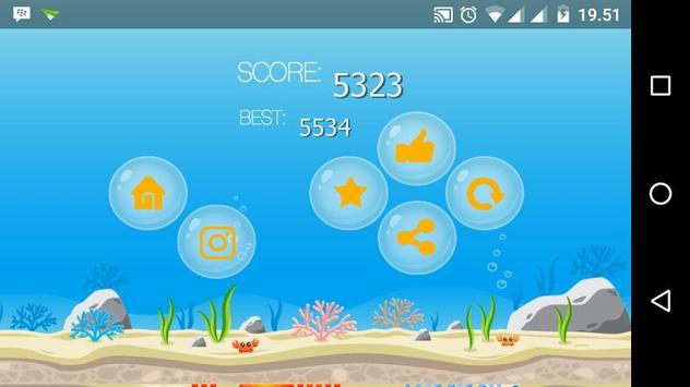 - Tap and hold the fish icon to shoot enemy (sharko, jellyfish, reef, octopus energy etc) to escape, survive mola mola and reach long Distance.
