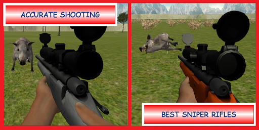 In the environment, there are valleys with surrounded by mountains. There are wild boars roaming around looking for prey. You are a hunter who shoot and kill boars. You can see around and aim from your sniper gun to shoot the boar. If your fire is missed, the boars will come toward you and you can become his prey. You are equipped with Sniper gun and, you have to survive