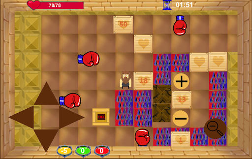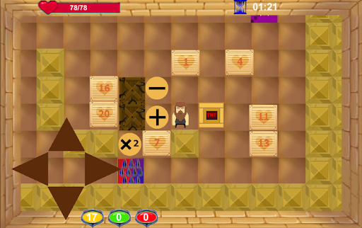 Box Pusher is a mind game where you push boxes with diffrent numbers and colors to the right spots (" ")("-")("x") , you have 3 numbers of diffrent colors and you must make the required numbers equal to 0 , but be aware that tou can only push boxes and not pull them back.