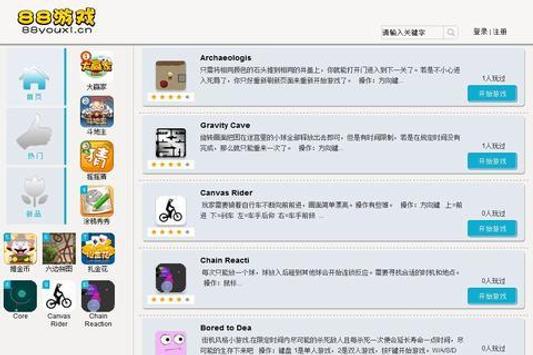 网站的结构一目了然,涵盖了所有类型的游戏。不管你是文艺青年还是清新小萝莉,都可以从这里找到你的最爱。首页没有任何杂乱广告。整体用淡淡的蓝色做衬托,给人安静,放松的感觉。88游戏厅倡导着“用户体验第一”,虽然在网站上有几百个html5游戏,但是响应速度却非常快。
