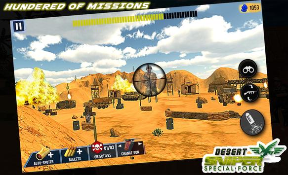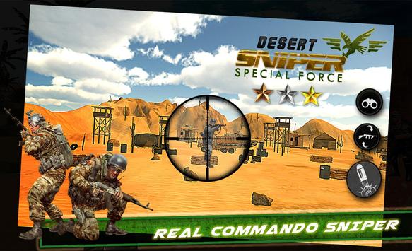 Desert Sniper Special Forces Here is on Sniper action game full of addiction, attracting beauty and real 3D High definition graphics build in Unity 3D this is real 3d sniper shooter combat right in the warm desert where enemies commandos are equipped with ak-47 , bazooka , rpg , pistols , chopper , artillery , m16 , us American sniper shooter , tanks , f16 , f18 raptor jet fighters Desert Sniper Assassin Shooter