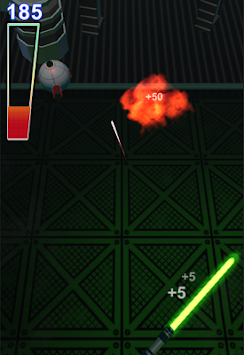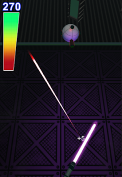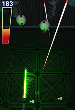 By tilting the phone and swiping to position the saber, you can block and reflect shots back at the training bots. Become one with the Saber and feel the flow of the ... thing that binds us together!