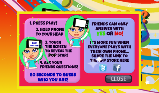 Just press PLAY to start, place your phone heads-up and ask questions to guess which Hollywood star you are! Friends can only answer YES or No and you have 60 seconds to guess the who you are!