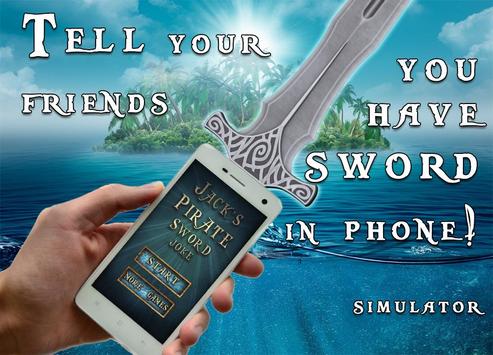 Imagine that you are a real captain Jack! Fight with pirates of Caribbean, Adriatic and Black seas!Jack pirate sword joke is a free pirate game simulator with which you can prank your friends. Just tell them you have a pirate sword in phone and launch app.How to play:Press start button, then choose your pirate sword. There are 3 types of pirate knife in app. After that you can shake your phone to make some pirates magic.WARNING:Jack`s pirate sword joke is a simulator. You can`t do magic with your phone. The phone camera CANNOT project images or three dimensional sword figures on any surface! It is only a simulator, a joke!