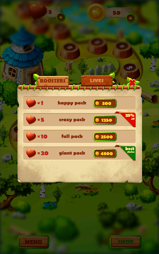 Experience over 7 different types of protectors, each with different stages of destruction and 8 unique boosters to help you pass the levels and crush the forest candy.