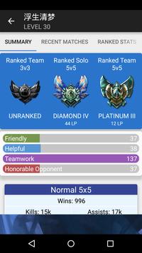 ★ Live summoner stats: view an opponent's summoner history and their stats as a champion.