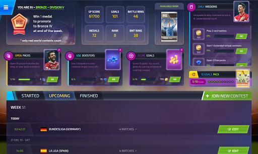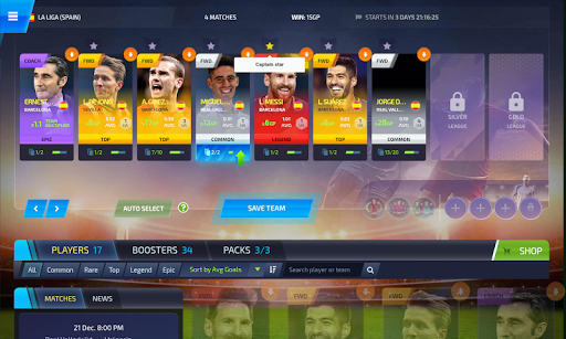A fantasy football social game, played with randomly generated real football player cards and boosters triggered by real sports events. Create the best collection of top scorers, upgrade your player cards to the max, score the most goals and goal points and be the best!