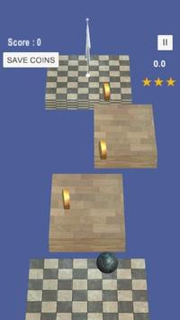 Every level has few coins that can be collected. The save coin button must be used to save coins collected so far. If the ball goes out of level borders the coins and will be reset.