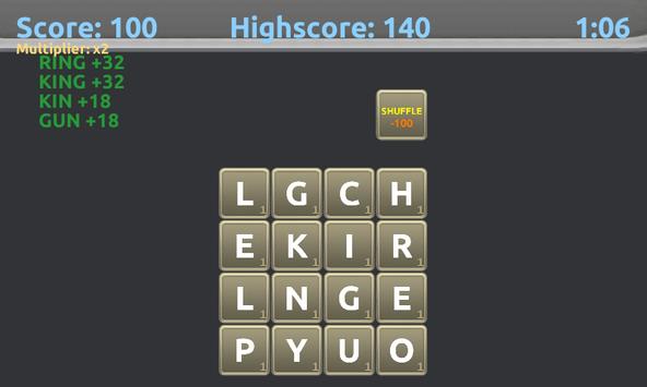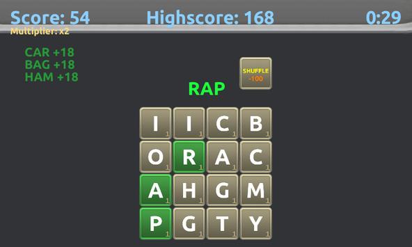 --You can choose to shuffle the letters if you can't find any words.