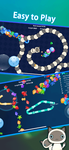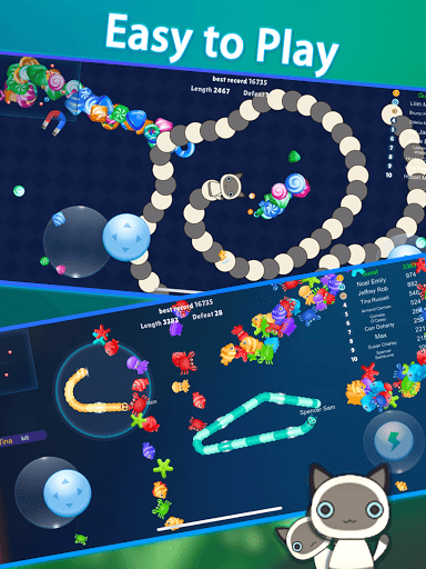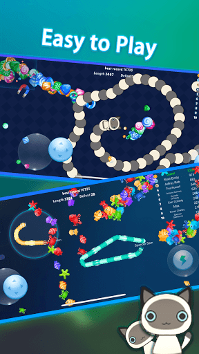 👍 Use the joystick to move your snake and grow longer by eating the colorful candy on the map.