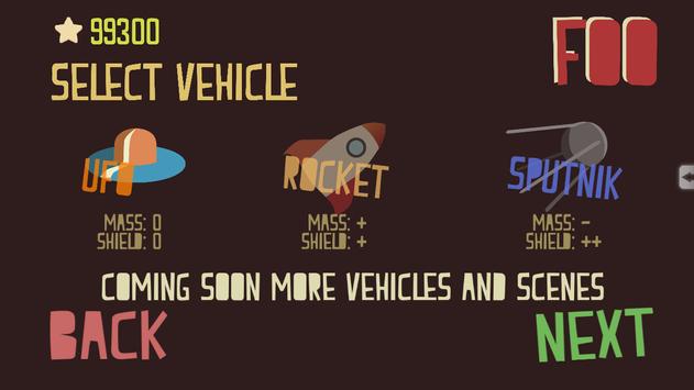 * Choose from 3 types of vehicles to help Foo: UFO, Rocket, Sputnik and F-Green