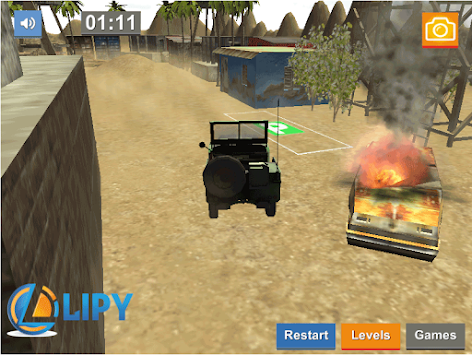 Driving a Army jeep is always a dream of everyone... full fill your dream by driving it today and park it on the market location... follow the arrows to find the location on the map... complete all levels to win the game.. Have fun playing army jeep parking game.