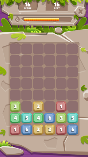 You first start with two or three rows of number stones with different and some similar colors and numbers. You will have to drag and drop each stone to another stone that is similar of color and number. When two tiles with the same number touch, they merge into one! The while time passes you see more rows appear. The game is over when you reach the top of the puzzle grid and the stone age ends!