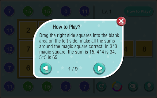 Magic Square is Designed For Families and for Everyone who want to open their minds in math, practice their brain, improve their logical ability, improve their intelligence level.