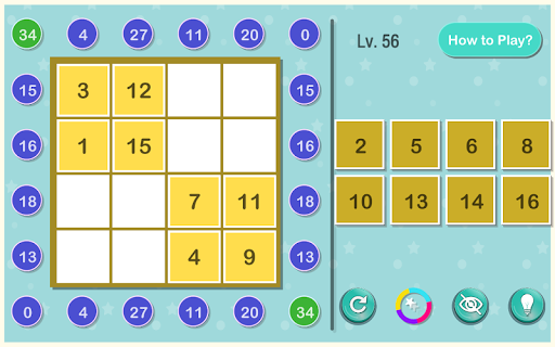 Magic Square, or Chinese Magic Square, is a Math game, Puzzle game and Brain game.