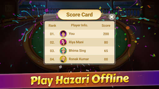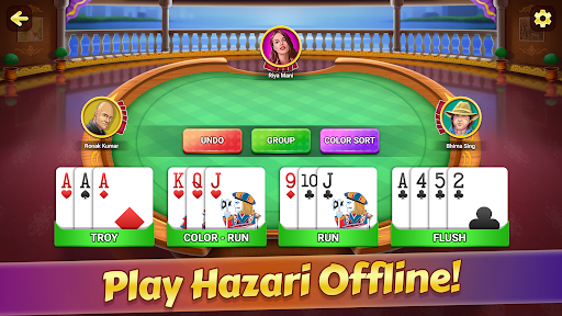 Our Hazari card game has very special features .You will have very challenging BOTs here and also you can challenge random players. We have Sort Option that gives you hints to make your best leads . We have an Individual Card Sector System where you can easily track your card sequence.