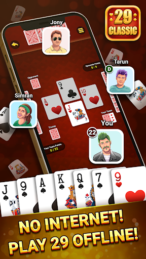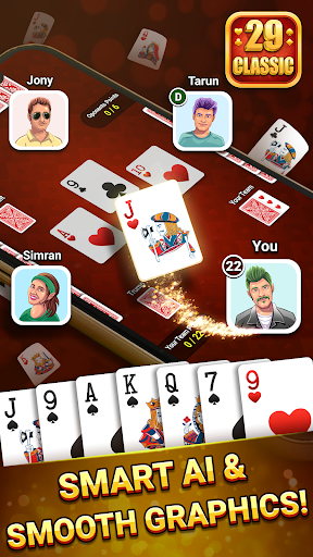 The most exciting and interesting 29 Card game is here to tease your brain and teach you to be more calculative. Twenty-nine or 29 is a very famous card game that is played by four players in fixed partnerships.