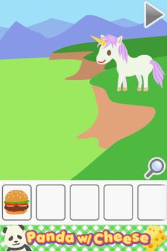 Escape Game Panda w/ Cheese is a point-and-click adventure game that has a similar format to escape the room games. However, instead of being confined to one room, you're exploring the colorful fairy-tale world. Find fun items and use them to solve quirky puzzles. This is a cute and happy game filled with cute characters such as a lolcat and llamas. Play Escape Game Panda w/ Cheese today!