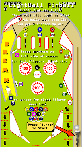 A pinball game like no other. Light up all the pool balls, when done the Eight ball reveals itself. Light up the Eight ball to win. You get three balls to start. Try to get the win with the least amount of balls. Control the flippers by touching anywhere on the left side of the