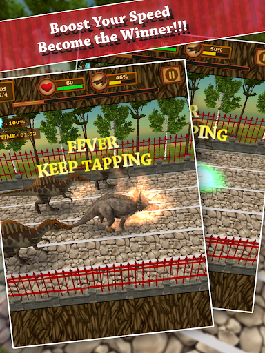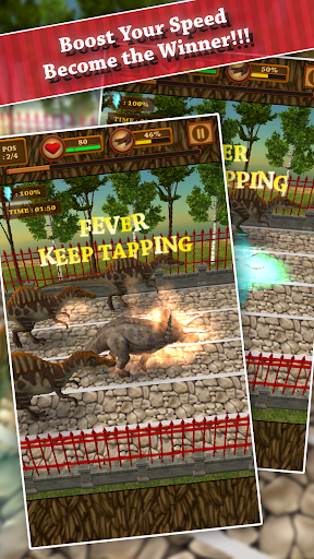 Dinosaur Racing is using your pet dinosaur to race to compete with other fellow dinosaur racers to search for the fastest runner . The gameplay is simply easy by tapping as fast as you can to accelerate the dinosaurs’ speed . In addition , turbo boost speed system is also available to turn the tide of your game situation . Be careful as tapping too much can make your dinosaur exhausted .