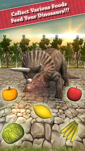 Triceratops were enormous herbivores or plant eaters with parrot like beak . Outstandingly , Triceratops had three horns with massive body making them looked like giant rhinos . A Triceratops’s fossil were found in same spot with T-rex’s , the king of beasts , locked in a mortal survival combat . Therefore , Triceratops were praised as a rival of the T-rex and we may often noticed images of these two dino species clan fighting battle used by various media . The Triceratops were regarded as the second famous dinosaur known by people around the world and will be used as leading characters in this game . This game is totally free simulation racing 3D game . Player can use only one finger tapping for gameplay . Just tap on mobile screen to collect foods , to feed foods to the virtual pet and to accelerate running speed or to use special turbo speed effects which can be enjoyed by both adults and children for enjoyment and relieving stress . The gameplay are divided in to 3 main screens ; Dinosaur Breeding , Food Hunting and Dinosaur Racing .