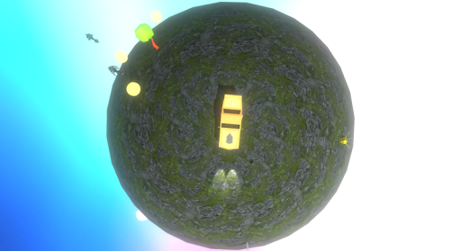 Car adventure game on a very small planet, be as fast as possible and don't let the car hit road obstacles.