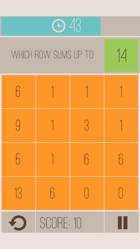 One Min Sum will test your most basic math skill: adding numbers to each other! How many times will you guess which row sums up to the target number in a minute?