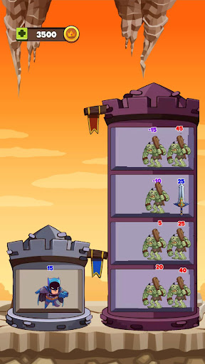 Many monsters and enemies in the tower. You need to defeat them, get treasures and save hostages. Try to drag your hero to explore the map, unlock skills and defeat powerful monsters, save the princess. Collect heroes, gold, skins,.. and build your tower.
