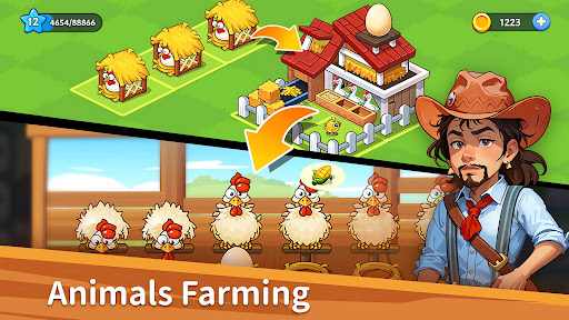 Welcome to Farm Party: Merge & Pet! Get ready to enjoy the fancy crit of planting, collecting, merging, fighting and more. Here, you can become a happy farmer, raise various animals carefully, farm happily, and meet other interesting residents. You can also merge buildings such as railway stations and ports, participate in crop trade, and turn yourself into a boss, making this place more and more bustling!