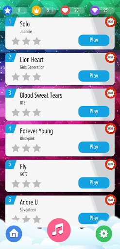 You can play the most popular song of Korean (KPOP) in this piano game. The gameplay is easy to play and simplifies piano keyboard into white tiles and black tiles.
