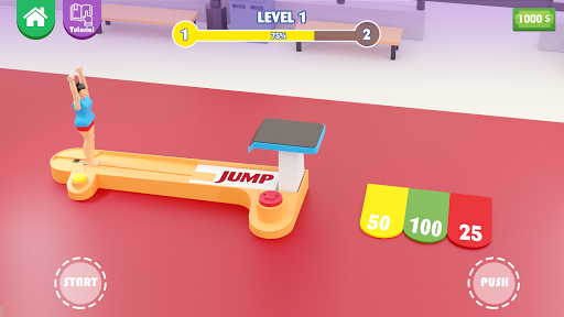 Players have to pay attention to the slide power tracker. Wait for the best slide power and hit the SLIDE button to slide the gymnast toward the vault.The gymnast then jumps on the vault and make a beautiful upside down swing. Now wait for the right moment and hit PUSH button to trigger the vault and push the gymnast to the air. The gymnast will perform a charming fly before hitting on the best landing pad. Tadaaa, You get the perfect score with splendid reward. Enjoy your winning moment and prepare for the next round.