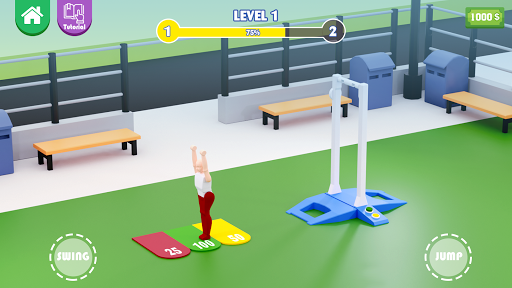 Players time their SWING button touches to gain momentum and swing the gymnast around the horizontal bar. At the right moment, hit the JUMP button to let the gymnast fly and wait for him/her to land on the best score pad. Touch down! Perfect, you are simply the best! Now collect your reward and get ready for the next round!