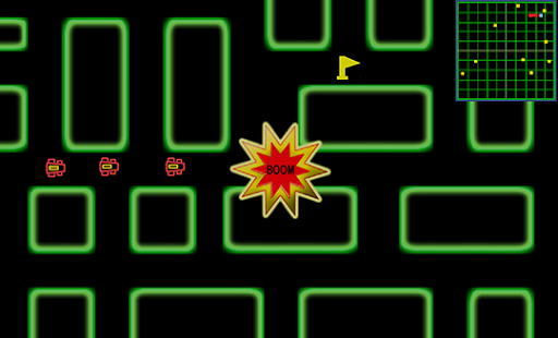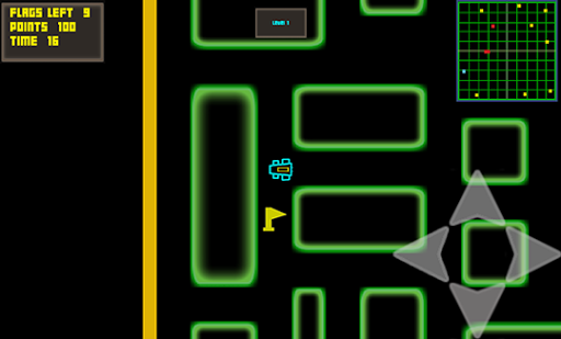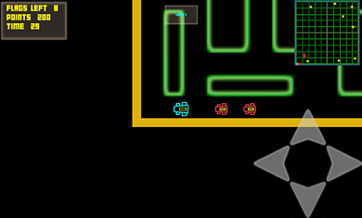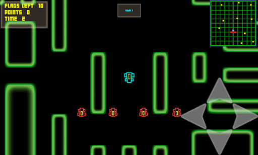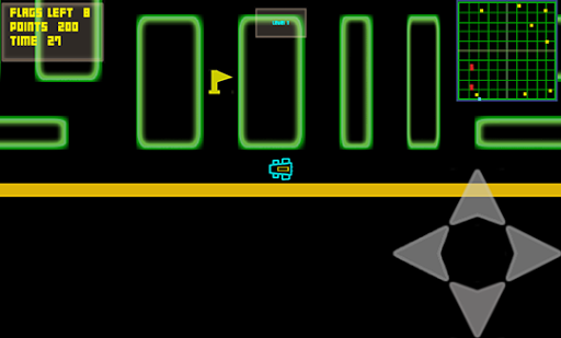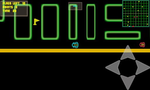 Get your game on with your retro neon racer and find the flags inside the maze while dodging the enemy racers. There are 50 fixed levels with a time limit with unlimited free plays to keep you busy. Use a simple tap touch control system to move the car throughout the maze path and find the flags while avoiding the enemy racers.